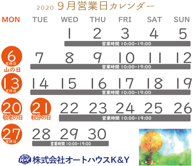 9月 30 \10月営業日のお知らせ/ 取得率5% 1級自動車整備士(全国自動車整備士における)在中! 株式会社オートハウスK &Yです 名古屋市緑区で中古車販売・買取・修理・板金・車検を... 新着情報 Share