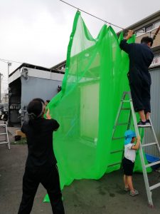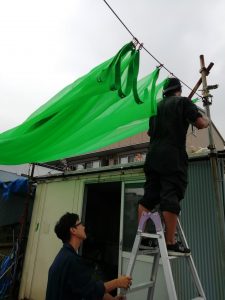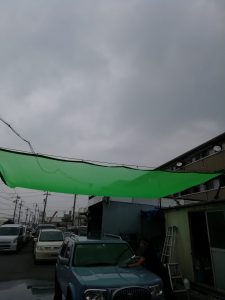 本日オートハウスK&Yは台風🌀の影響で破れてしまった、日影ネットを新しく取り付けました✨