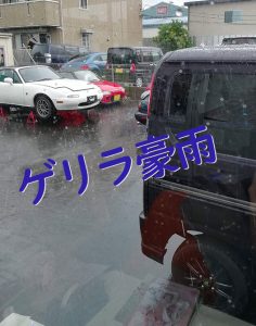 突然の豪雨に、女性スタッフ二人で車がきれいになるー✨