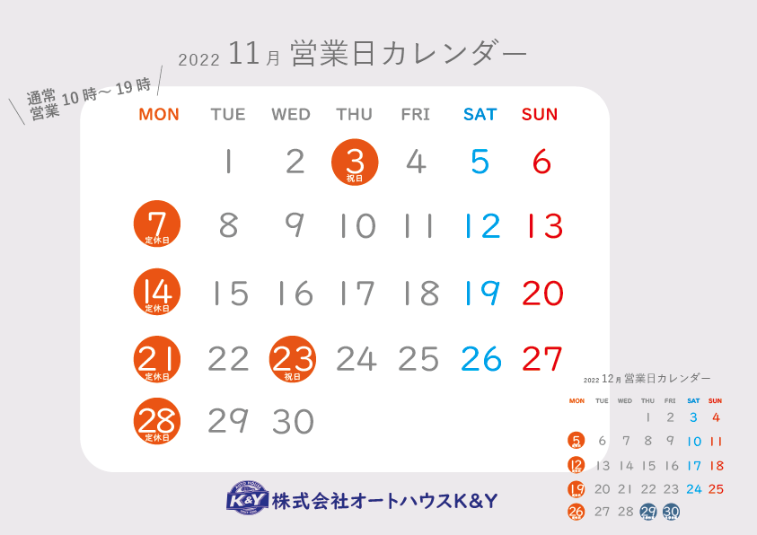 11月は㈪定休日に加えて、